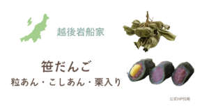 越後岩船家の笹団子は、北越後に自生の新芽のやわらかなヨモギと、当地・国産の良質な餅粉を杵臼でつきあげたコシのある生地、そして甘さを控えた自家製餡が自慢です。昔ながらの伝統製法(後蒸し方式)で製造された – 越後 岩船家 – だけのプレミアム笹団子を是非お試しください。